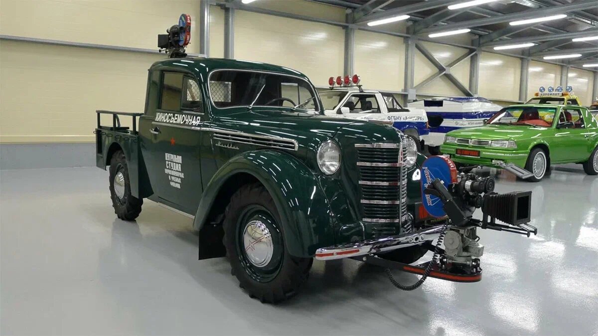 В нагрузку покупателю-коллекционеру достанутся закреплённые на кузове кинокамеры «Конвас-автомат» (передняя — на подвесе для ходовых съёмок) и ящик с оборудованием в задней — «рабочей» — части кузова. Уникальный проект оценён в увесистые 7,9 миллиона рублей.