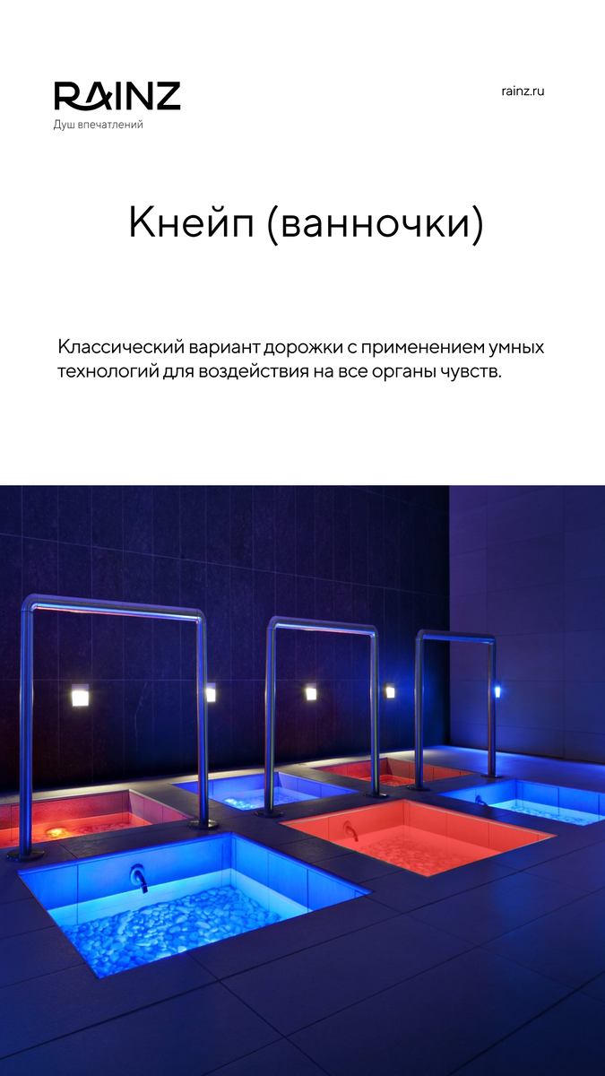 Не упустите возможность внедрить инновации в ваш бизнес и повысить его рентабельность. В компании RAINZ вы можете получить бесплатный план установки Дорожки Кнейпа или Душа впечатлений, адаптированный под ваш дизайн-проект, детальный расчет сметы. Оставьте заявку на сайте и получите оборудование, которое поможет вам выделиться среди конкурентов, привлечь новых клиентов.