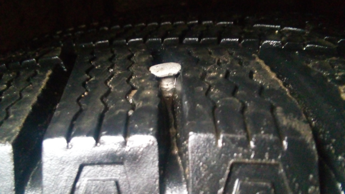 Тут уже ситуация серьёзнее, но не без выхода. Народные средства в помощь! Самый простое и доступное решение — саморез. Вот он, твой спаситель. Вкручиваешь его в место прокола и получаешь шанс подкачать колесо до нужного давления. Где его взять? Всё просто — выкручиваешь саморез из чего угодно в салоне! К примеру, из сиденья или полки.