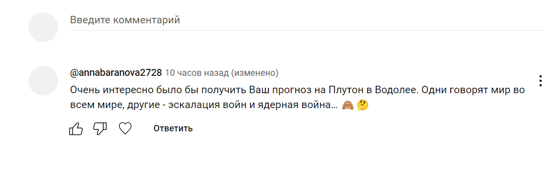 Понятно, почему говорят про "мир во всём мире". Потому что "мир, дружба, жвачка" - это символы 11-го дома, с которым соотносится Водолей. Но прежде всего Плутон в Водолее - это сочетание энергий управителя Водолея - Урана , планеты безбашенной, и Плутона, планеты властной и трансформационной.