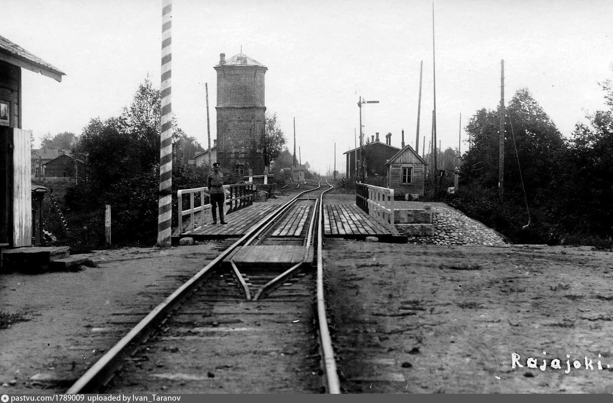 До 1940 года граница с Финляндией проходила по реке Сестре, а пограничный пункт находился в современном Курортном районе Санкт-Петербурга в Белоострове. И Финляндия, и СССР построили на границе большие вокзалы, которые не сохранились. Посмотрим на исторические фотографии и сравним с тем, что там сейчас. Железная дорога была открыта во времена Российской империи, а между Финским княжеством и Петербургской губернией требовался таможенный пункт. Он был создан в Белоострове, а с финской стороны появилась станция Раяйоки. После революции здесь действовал уже полноценный пограничный пункт. В 1917 году Финляндия открыла большой каменный вокзал Раяйоки, построенный в стиле национального романтизма. Проект создал Бруно Гранхольм, также спроектировавший и другие станции на этой железной дороге, например, Левашово и Парголово. Находился он здесь: 60.149364, 29.987843, к северо-западу от современной станции "Белоостров". Финский вокзал был полностью разрушен в Великую Отечественную войну, но кое-
