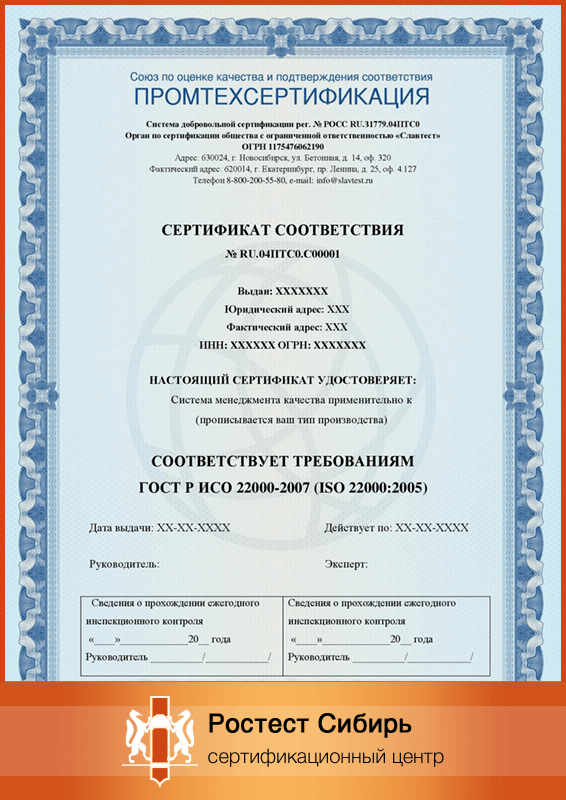 - после комплексной проверки и отладки системы заявителю выдается сертификат соответствия ГОСТ Р 51705.1-2001 или ГОСТ Р ИСО 22000-2019.