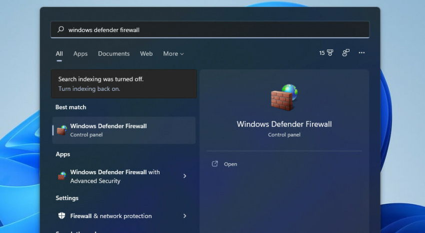 Чтобы проверить, подключен ли брандмауэр Windows Defender, щелкните меню Пуск Windows (или нажмите клавиши Windows+i) и найдите пункт Брандмауэр:
