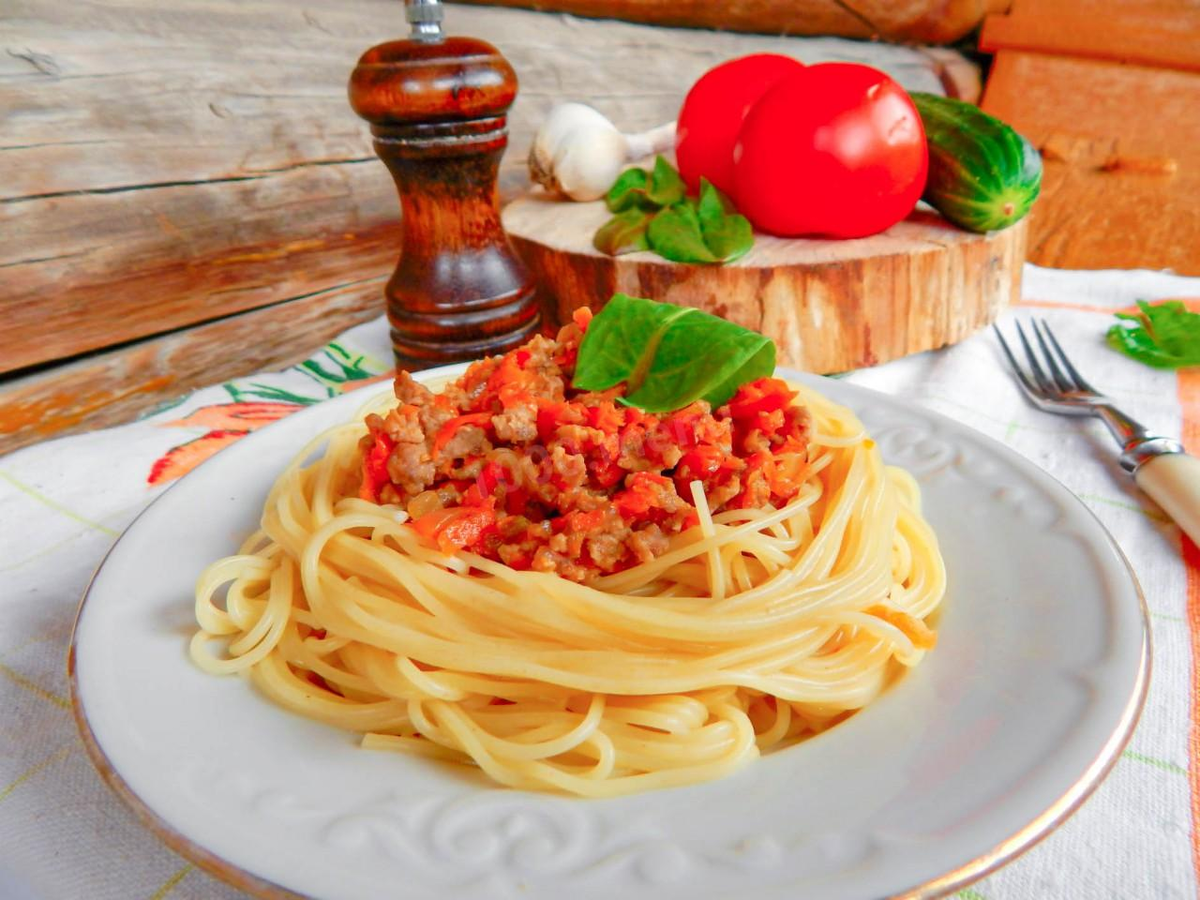 Оригинальная, самая лучшая, праздник каждый день! Паста болоньезе — классический рецепт Итальянской кухни, представляет собой сочетание любого вида макарон с густым томатно-мясным соусом. Набор ингредиентов для болоньезе простой и минимальный, такие продукты есть в холодильнике у каждой семьи. Репчатый лук - 1 шт. Чеснок - 2-3 зубчика. Оливковое масло (или любое другое) - 2 ст.л Фарш - 500 гр. Помидоры - 2 шт. Томатная паста - 2-3 ст.л (Я беру томатную пасту фирмы Ящик астраханских помидор, ну очень вкусная и насыщенная, а самое главное натуральная) Спагетти - 250 гр. Морковь - 1 шт. Соль, перец, специи по вкусу. Зелень (любая) на Ваш вкус Общее время приготовления: 1 ч 10 мин Шаг 1: Как сделать классическую пасту болоньезе? Подготовьте продукты. Я взяла спагетти, но вы можете взять абсолютно любые макароны, главное, чтобы они были из твердых сортов пшеницы. Фарш подойдет из любого мяса, у меня смесь говяжьего и свиного. Вы можете приготовить его самостоятельно или использовать гот