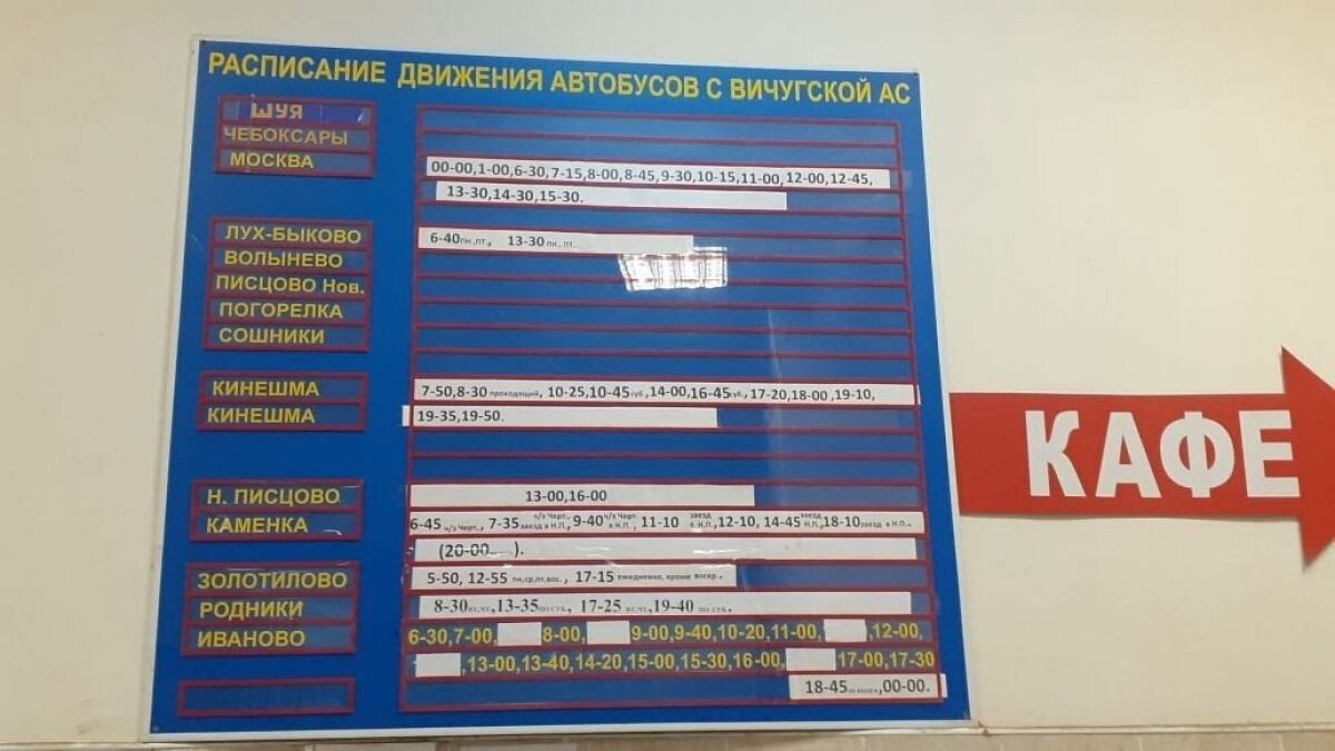 Дополнение к проблеме, образовавшейся в Вичугском районе. Так вчера выглядело расписание автобусов на автовокзале в Вичуге. Рейсы отменены в четырех населенных пунктах Вичугского района Волнево, Писцово, Погорелка и Сошники, а также в Шую и Чебоксары. Местные жителя в комментариях в сообществе «Услышано Вичуга» утверждают, что содержал эти рейсы ИП Андрей Трубников. На нем же и обозначенные ранее маршруты из деревни Кирикино и села Красный Октябрь. Почему Трубников отказывается, да еще и так резко, от перевозок, неизвестно. Как прокомментировал сегодня департамент дорожного хозяйства и транспорта региона «в адрес перевозчика указанных маршрутов ИП Трубниковой А.С. направлено письмо о необходимости строгого соблюдения установленных графиков движения. Вопрос восстановления пассажирских перевозок в полном объеме в настоящее время прорабатывается Департаментом совместно с перевозчиком». То же ответили на жалобы жителей и в администрации Вичуги.