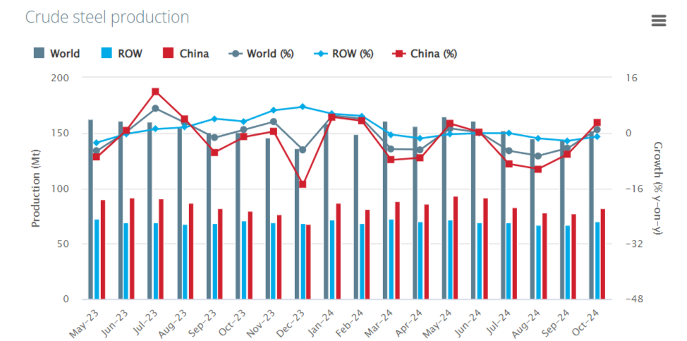 Глобальное производство стали в октябре 2024 г. — общемировой отскок, но в России происходит погружение на дно, проблемы усиливаются