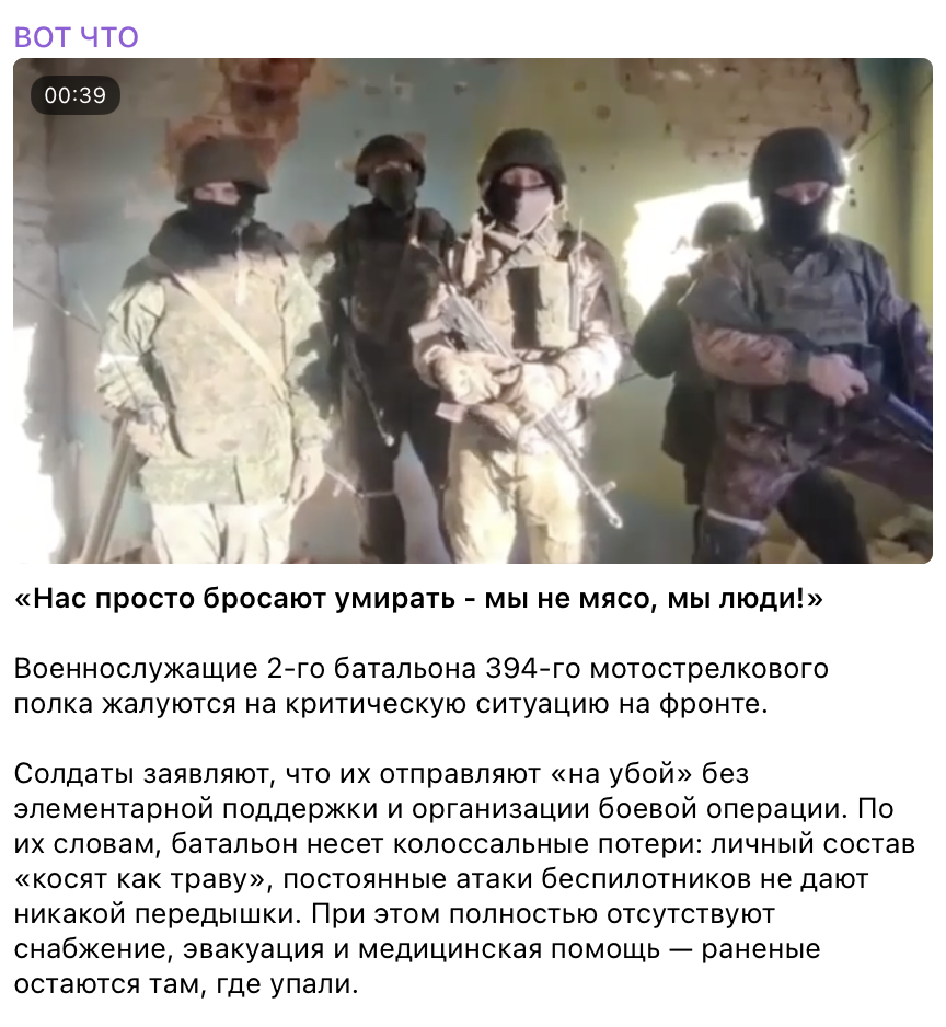 «Нас просто бросают» — в сети расходится ролик, в котором российские бойцы, воюющие на СВО, «рассказывают о тяжелой ситуации на фронте». На кадрах военнослужащие 2-го батальона 394-го мотострелкового полка якобы жалуются на огромные потери, равнодушие командования, проблемы со снабжением. На самом деле видео с жалобами российских военных — очередной фейк, наспех сделанный украинскими ЦИПсО. Технология проста — фейкоделы берут реальное видео и меняют на нем звуковую дорожку. Поскольку лица бойцов скрыты масками, заметить подмену непросто. За основу взято видео, появившееся в сети 19 октября 2022 года. На реальных кадрах российские военнослужащие благодарят за оказанную бойцам поддержку на передовой. При этом огромные потери и проблемы со снабжением 394-го полка, о котором идет речь в фейке — не более, чем фантазии украинских ЦИПсО. В реальности штурмовики подразделения постоянно громят противника, продвигаясь вперед. Также они внесли немалый вклад в освобождение населенных пунктов в рай