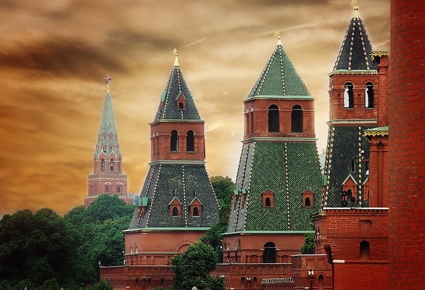 О том, как строился и видоизменялся кремль и стены кремля, можно прочитать здесь. Кремль, занимающий площадь в 27,7 гектара и расположенный на Боровицком холме в форме неправильного треугольника, является одной из главных достопримечательностей Москвы. На его территории можно увидеть 20 башен, 8 соборов и 5 дворцовых построек, построенных в разные эпохи. Наиболее известные из них: На территории Кремля расположены Большой Кремлёвский дворец, Грановитая палата, Арсенал, Сенат, Потешный дворец и Государственный Кремлёвский дворец. Последний до 1992 года носил название Дворец Съездов. Помимо уже упомянутых музеев Московского Кремля, которые располагаются в церквях и соборах, здесь находятся ещё два великолепных собрания: Оружейная палата и Алмазный фонд. Оружейная палата. Этот музей был создан на основе коллекции княжеских сокровищ, которую начали собирать ещё в XIV веке. В 1806 году он получил официальное звание музея. В его коллекции хранится более 4000 уникальных образцов вооружения, по