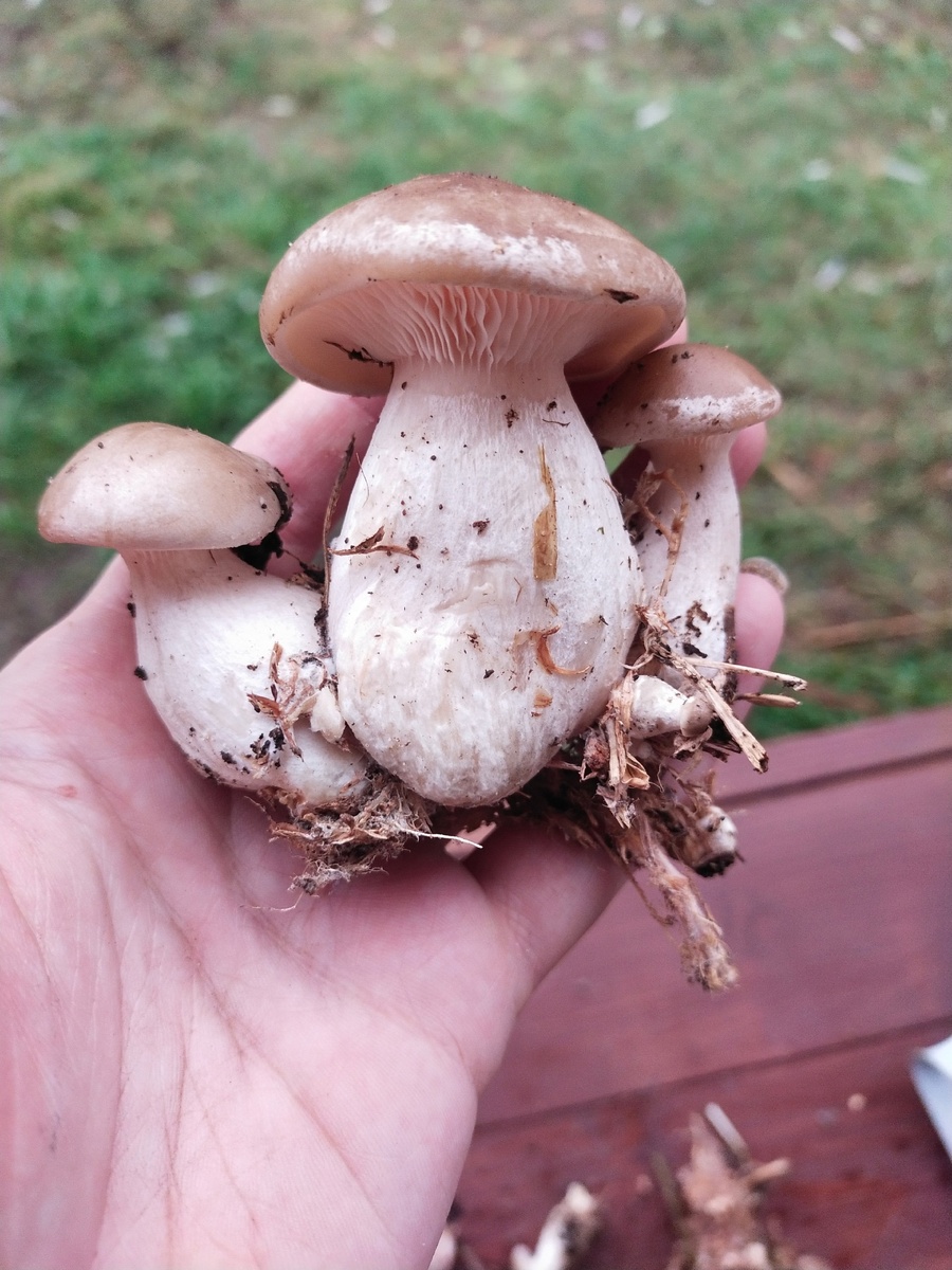 Это у нас говорушка булавоногая. Помните торт "Сказка"? Будто бы с него оторвали эти милые пузатые грибки. Такая говорушка съедобна, но с алкоголем её употреблять нельзя. А эти стручки, похожие издалека на побеги папоротника, зовутся клавариадельфус. Гриб съедобен, но в самый чёрный день, потому что слегка горчит. Наконец-то и я смогла полюбоваться вживую на хлороциборию. Чем не лесной цветок? А вот и лакомство в азиатском стиле.
