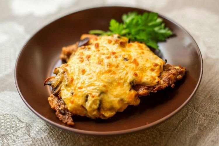 - Спустя час достаньте форму с мясом из духовки и посыпьте натёртым сыром. Снова поставьте форму в духовку до образования румяной сырной корочки. Подавайте свинину по-французски горячей. Приятного аппетита!