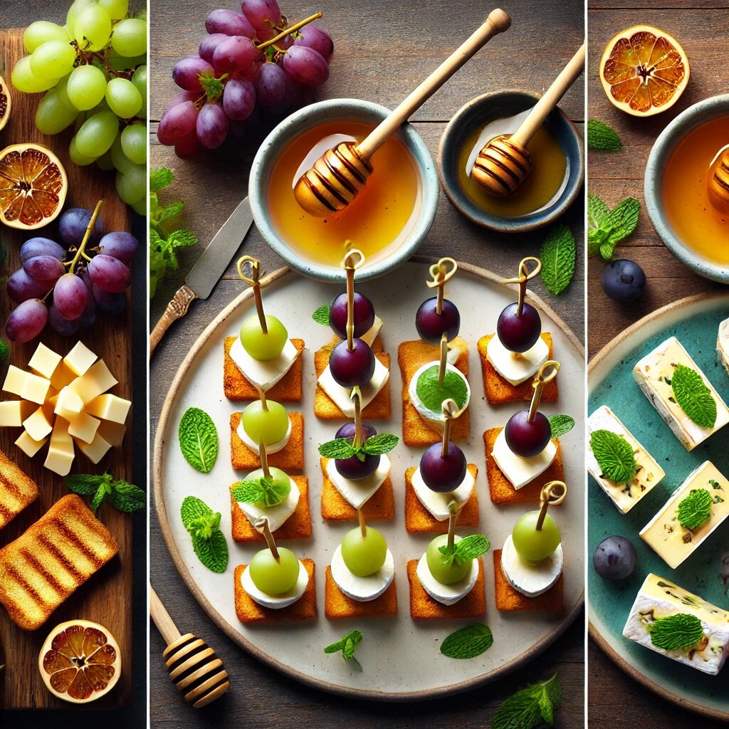 - Добавьте мед: Аккуратно полейте каждое канапе небольшим количеством меда — это добавит сладкий оттенок, идеально сочетающийся с виноградом и сыром. Используйте жидкий мед, так как его легче нанести тонким слоем. Если мед загустел, слегка подогрейте его на водяной бане для облегчения работы.