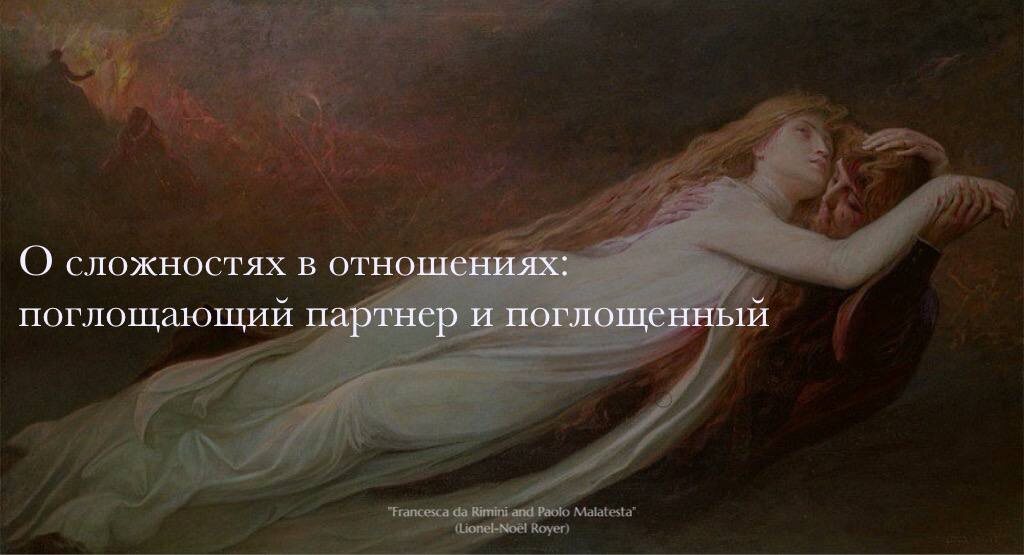 Сложные личности легко очаровывают. Они привлекают своей многогранностью и загадочностью (время от времени переливающейся в недосказанность). Они действуют магнетически, однако магнитом в них служит та сложность, которая, на самом деле, тяготит их самих, поскольку является следствием большого количества врожденных психических противоречий, следствием дисоциированности и разобщенности. Приспособление к таким сложным натурам, как и их собственное приспособление к партнеру, всегда реализуется с препятствиями. Сложные личности заполняют собой все пространство отношений, ввиду чего более простой партнер оказывается как бы поглощенным эмоциями, вызываемыми отношениями. Эту непростую и неравную ситуацию Юнг назвал проблемой «поглощенного и поглощающего». В чем суть этой проблемы?