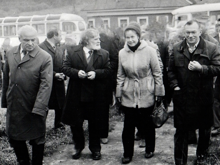 На фотографии (интернет): природный бухтинщик Василий Иванович Белов давно не подначивал соседку по дому Ольгу Александровну Фокину; Куняев с интересом прислушивается к импровизациям товарища, а начальник всех - нормальных - вологодских литераторов Александр Александрович Романов оглядывается с недовольством: спутники не держат равнение да и обуты не так, как он, не в сапоги, не в Москву же собрались...