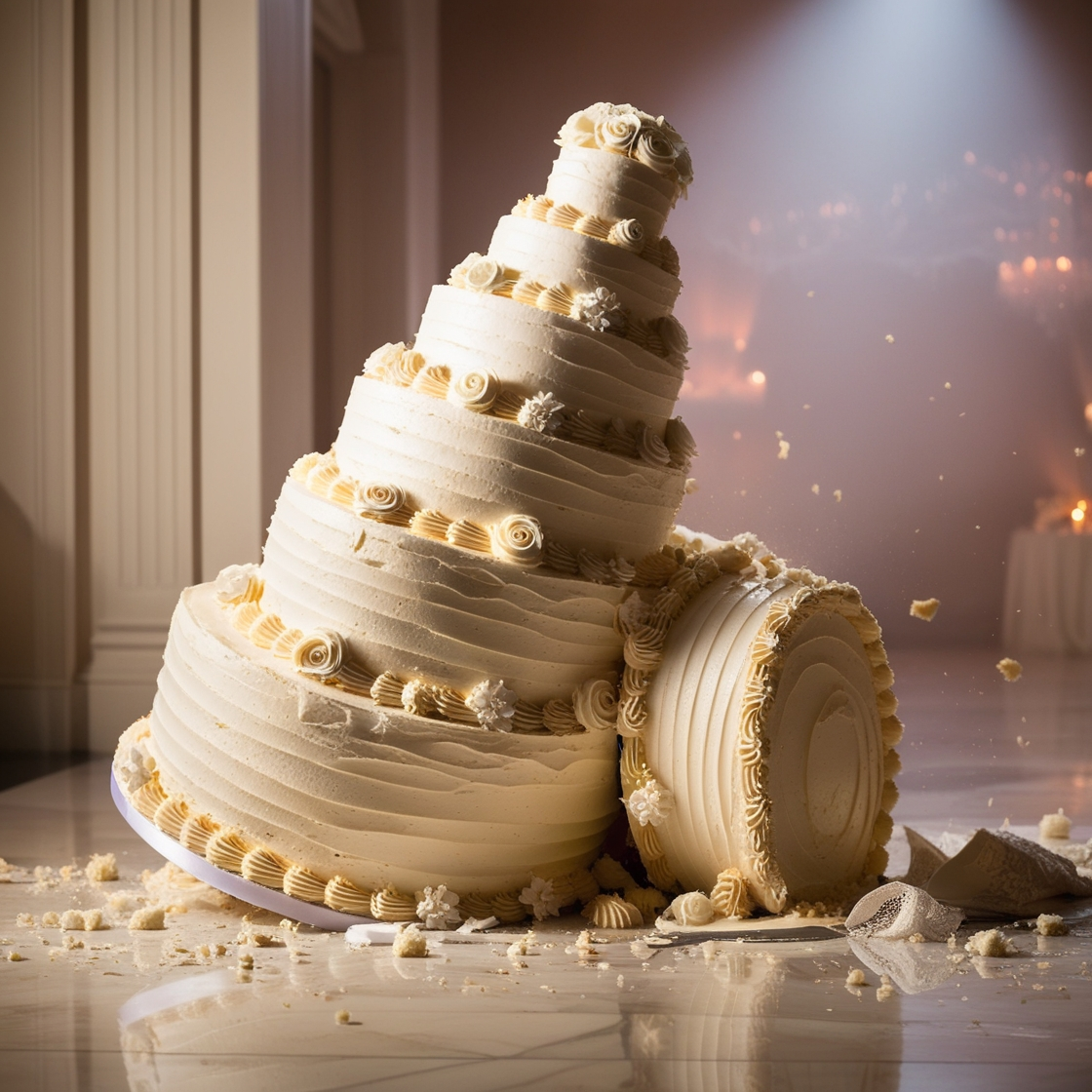 🎂 Торт был шедевром. Три яруса, украшенные сахарными цветами, каскадом стекающим шоколадом и фигурками жениха и невесты, которые казались такими же хрупкими, как и само произведение кондитерского искусства. Он был центром вселенной на этой свадьбе, сияя под софитами, словно драгоценность. Или, по крайней мере, так казалось до того самого момента. 🤷♀️ Организация свадьбы лежала на плечах тети Светланы, женщины, чья энергия была сопоставима с силой торнадо. Она контролировала абсолютно все: от рассадки гостей до выбора салфеток. И вот, наконец, настал момент торжественного внесения торта. 👀 Двое крепких мужчин, нанятых специально для этой миссии, несли шедевр на подносе. Все гости замерли в ожидании. Фотограф щелкал затвором камеры с умопомрачительной скоростью. И вот, когда до стола оставалось всего несколько шагов, случилось ужасное. Один из носильщиков неуклюже наступил на кабель, который весело извивался под ногами и споткнулся. Тишина казалось вечной. Энергия напряжения повисла