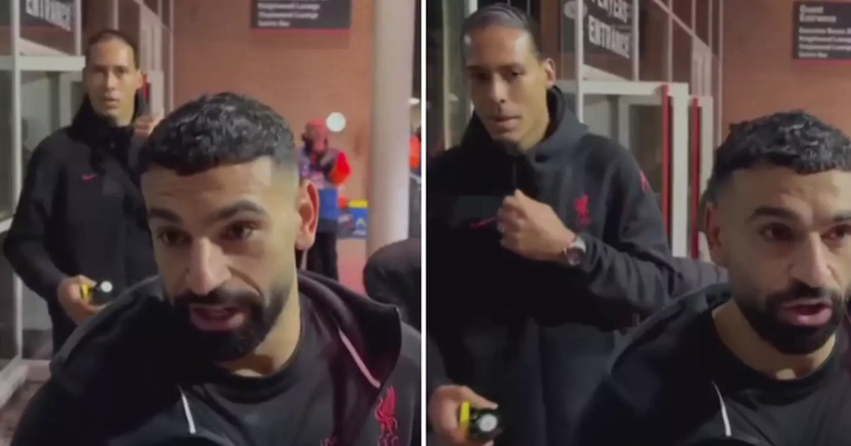 Пока египтянин излагал мысли собравшимся журналистам, Ван Дейк медленно подошел к нему сзади и, ухмыльнувшись, поймал взгляд Салаха, который, похоже, тоже нашел ситуацию забавной.