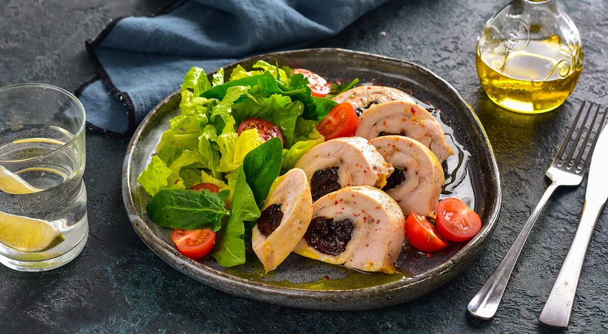 Запеките в духовке куриный рулет с черносливом и удивите гостей на празднике. Это блюдо не только вкусное, но и выглядит эффектно в разрезе!