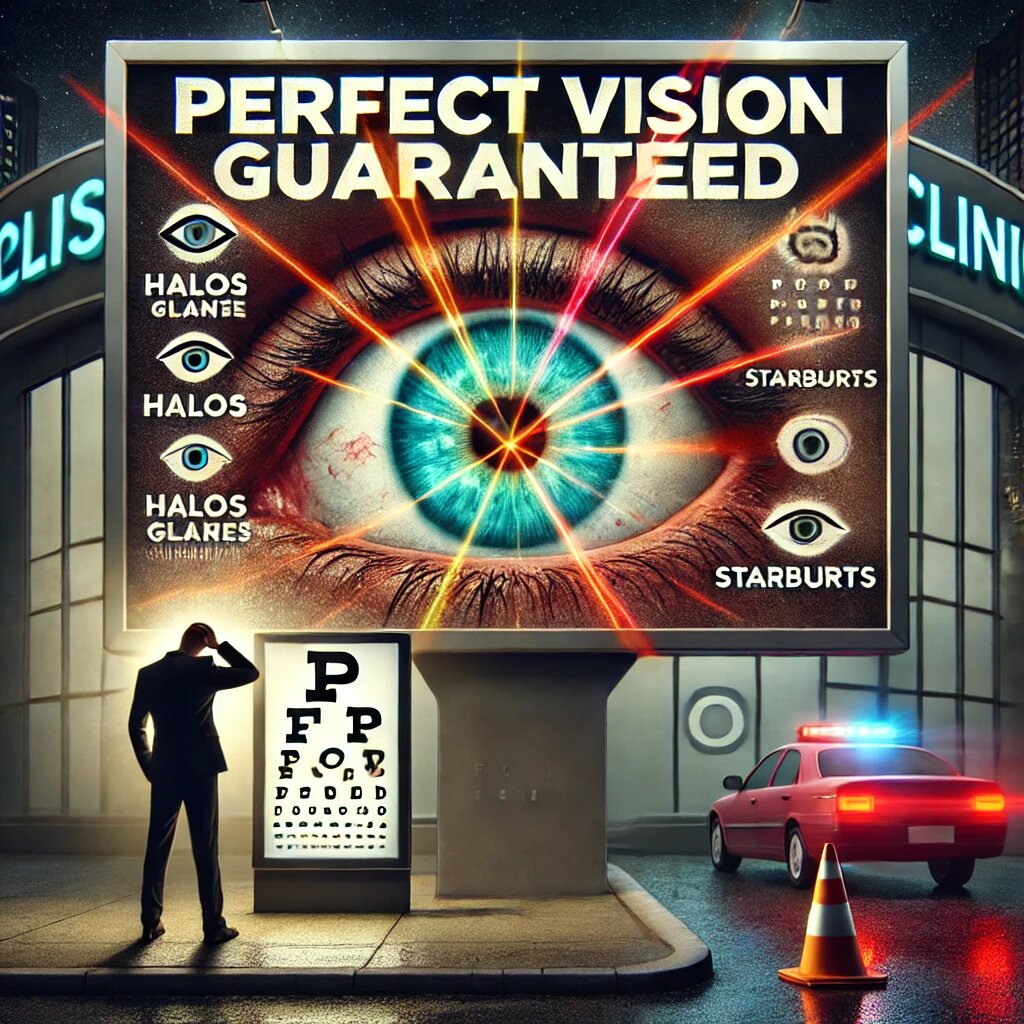 Рекламные кампании клиник лазерной коррекции зрения изобилуют обещаниями: "идеальное зрение за один день", "пожизненная гарантия", "безопасно и эффективно". Звучит привлекательно, но что на самом деле скрывается за этими словами? Реальность оказывается далека от рекламных обещаний, особенно для тех, кто столкнулся с осложнениями. Многие клиники заявляют, что операция гарантирует восстановление идеального зрения (обычно 100% или 1.0). Однако в медицинских документах, которые подписывает пациент перед процедурой, упоминается следующее: Это значит, что клиника страхует себя от любых претензий. Даже если после операции зрение ухудшится, доказать вину клиники будет крайне сложно. В группе пострадавших от лазерной коррекции зрения можно встретить множество примеров разочарования: «После операции у меня начались сильные гало и звёзды ночью. Врач сказал, что это временно, но прошло уже два года, а проблема не ушла. На мои жалобы клиника отвечает, что я подписал согласие, где указаны риски.» «