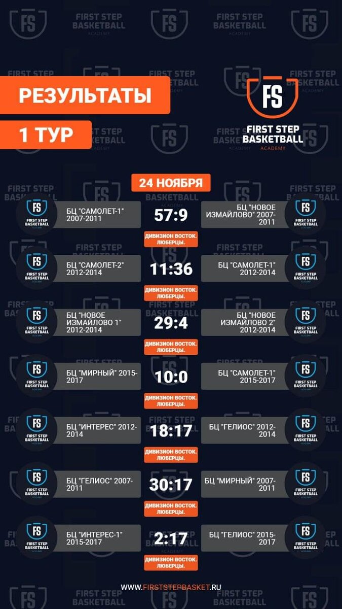Мы готовы поделиться результатами матчей, которые прошли 24 ноября на Дивизионе Восток и Дивизионе Север! 🎉🔥 📲 Следите за турниром на нашем сайте — раздел Онлайн статистика матчей. Или заходите в Личный кабинет для более подробной информации. #Лига #баскетбольнаяакадемия