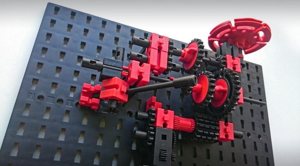 Специально для этого материала компания «PacPac» предоставила конструктор «FischerTechnik», схематично показывающий принцип работы механической коробки передач, и мы даже смогли его собрать. Обратим особое внимание на то, что он передает лишь самые базовые свойства, совершенно не учитывая ряд явлений, происходящих в реальной автомобильной КПП: в нем нет ни муфт, ни вилок, ни синхронизаторов, а выбор передачи реализуется посредством перемещения собственно первичного вала. Если бы это была реальная металлическая «механика», она прожила бы совсем недолго, разлетевшись уже после нескольких десятков переключений. Тем не менее, взглянув на эту маленькую бесстрашную «коробочку передачек», лихо подтыкающую их без синхронизации в неподвижный вторичный вал, можно увидеть и понять основное предназначение агрегата: давать возможность менять передаточное отношение при помощи шестерней различного размера. А это уже что-то.