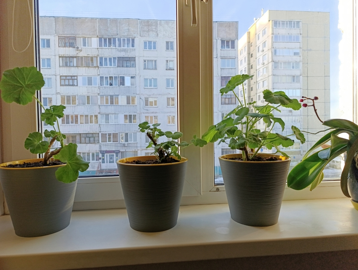 Пересадила в новые горшки пеларгонии. Те, которые выглядели совсем не айс, были подвергнуты обрезке.