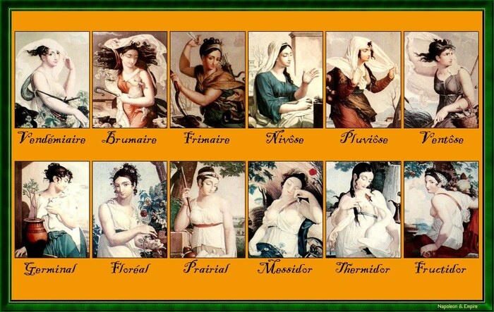 5 октября 1793 года был введен новый, революционный календарь. Вместо всяких римских богов да императоров революционеры решили ввести народно-хозяйственные названия месяцев. Вандемьер - месяц сбора винограда, брюмер - месяц туманов, модельер сосет хер. Наивоз - снега, вантуоз - ветров, и т.д.