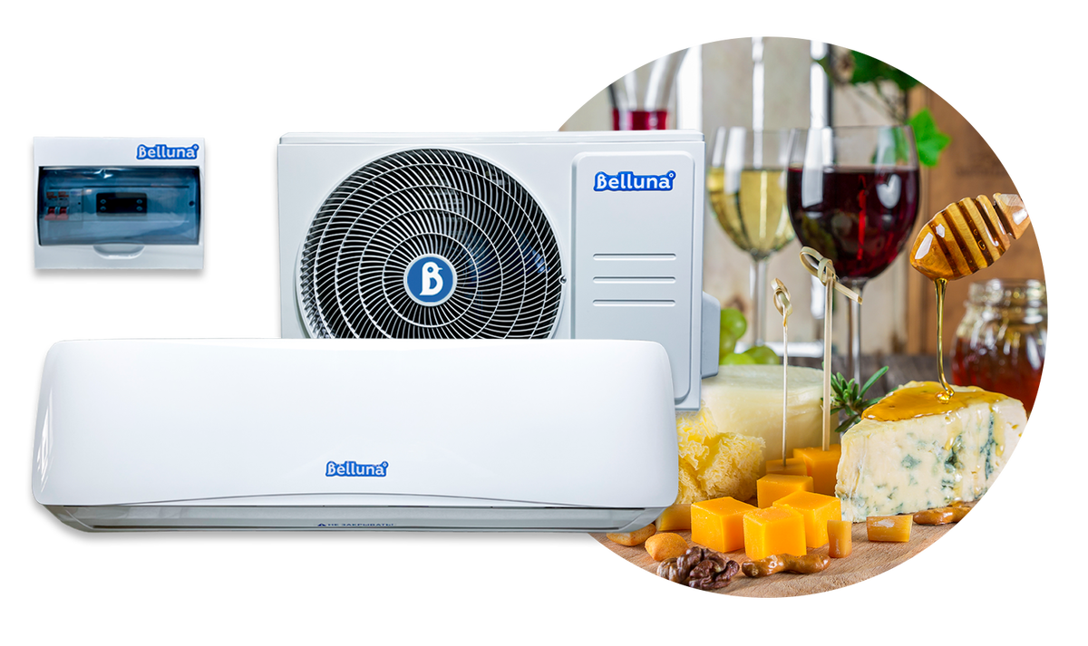 Компания “Belluna” предлагает модели сплит-систем для винных погребов, которые друг от друга отличаются мощностью и возможностью поддерживать температуру и влажность в комнатах для хранения вина с разным объемом пространства.