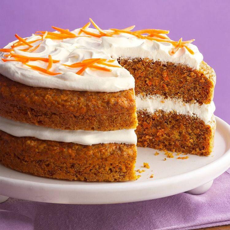 Эта аппетитная версия всеми любимого десерта с пониженным содержанием сахара прекрасно впишется в ваш режим питания. Время приготовления: 45 минут Дополнительное время: 25 минут Общее время: 1 час 10 минут Порций: 16 Выход: 16 порций Морковный торт Воздушная глазурь из сливочного сыра Две круглые формы 20х4 см или 23х4 см При использовании заменителя сахара выберите стевию для выпечки вместо обычного сахара. Следуйте инструкциям на упаковке для использования количества продукта, эквивалентного ½ стакана обычного и коричневого сахара. Пищевая ценность на порцию: то же, что и ниже, кроме 231 калории, 25 г углеводов, 186 мг натрия. Дневная норма: 3% кальция. Замены: 1½ других углеводов. Выбор углеводов: 1½. Размер порции: 1 кусок Калории 223, Жиры 10, Насыщенные жиры 2г, Холестерин 3мг, Углеводы 30г, Общие сахара 17г, Добавленные сахара 15г, Белки 4г, Клетчатка 2г, Натрий 205мг, Калий 108мг Заказать для рецепта с быстрой доставкой: