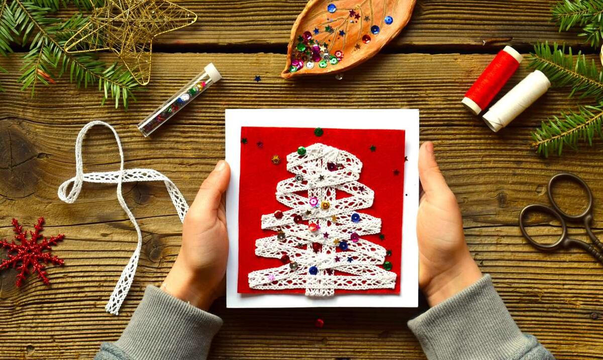 Вот вам новогодняя задачка: сколько праздничных открыток нужно сделать ребёнку, чтобы порадовать всех близких, друзей, учителей? Ой, как же он успеет смастерить так много и где взять идеи? Мы собрали ещё несколько вариантов простых и красивых открыток! Фото: Oksana_Slepko/Shutterstock.com Кстати, идея на фото сверху очень хороша: всего-то кусочек кружева, фетр, бусины — и какая красивая получается открытка с ёлочкой! Понадобятся: цветной картон, цветная бумага, пластиковые крышечки, клей, ножницы. Фото: Elena Chevalier/Shutterstock.com Для бумажных элементов можно использовать простой клеющий карандаш. А вот как быть с крышечками? Не хочется использовать сильный клей с запахом. Возьмите двусторонний скотч — ребёнку будет интересно с ним работать. Понадобятся: картон. цветная бумага, фломастеры, клей. Фото: marishkaSm/Shutterstock.com Понравилось складывать ёлочку? Здесь у нас еще много схем оригами (и фигурки тоже можно использовать в открытках). Понадобятся: плотная белая бумага, цвет