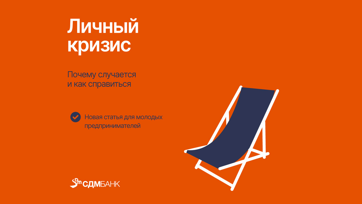 Личный кризис предпринимателя можно описать довольно просто: хочется все бросить, уехать в другой город и начать новую жизнь. Так бывает, когда бизнес завязан только на вас и работа съедает все ваше время: стоит немного расслабиться — продажи тут же падают, сотрудники расслабляются и все идет наперекосяк. Может быть и другая ситуация: бизнес вроде бы работает как надо, но вы чувствуете, что зашли в тупик. Нет новых целей, все кажется скучным, а идеи исчерпаны. В статье рассмотрим возможные причины личного кризиса и подскажем, что можно сделать. Когда стоит волноваться? Если вы в кризисе в первый год работы — это нормально. Начало всегда тяжелое: приходится много работать, что-то может не получаться, и это сильно выматывает. Если кризис случился спустя несколько лет, можно предположить, что вы перегорели. Возможно, нагрузка была слишком высокой и вы не успеваете отдыхать. Что делать? Совет 1. Посмотрите на ситуацию более объективно, отдохните Отложите дела и возьмите отпуск. Смените обс