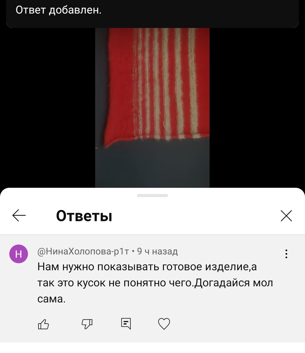 "Почему вы показываете обрывки вашей работы - где готовое изделие?!?!"