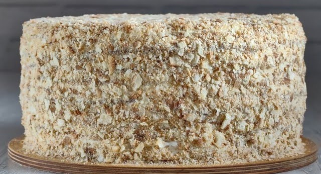 Я использую: Коржи: Крем: Займёмся тестом: В миску всыпаем 750 грамм муки, берём 400 грамм замороженного сливочное масла и обваливая в муке, натираем на крупной тёрке. Перетираем муку с маслом руками, до получения масляной крошки. Делаем углубление и вбиваем 2 яйца, всыпаем пол чайной ложки соли, выкладываем 100 грамм сметаны и вливаем 180 миллилитров молока. Перемешиваем и замешиваем тесто. Подготовка теста: Полученное тесто выкладываем на стол, слегка присыпаем мукой, раскатываем в толстый жгут и делим его по перек на 2 равные части. Каждую часть теста "выровнять" - немного раскатать и поделить с помощью ножа на 6 равных кусочков. И всего должно получиться 12 одинаковых кусочков теста. Выкладываем подготовленное тесто на тарелку, накрываем пакетом и отправляем в холодильник на 1 час. Займёмся кремом: В сотейник или кастрюльку вбиваем 3 яйца, всыпаем 250 грамм сахара, 80 грамм кукурузного крахмала (вы можете использовать и картофельный), 10 грамм ванильного сахара и перемешивае