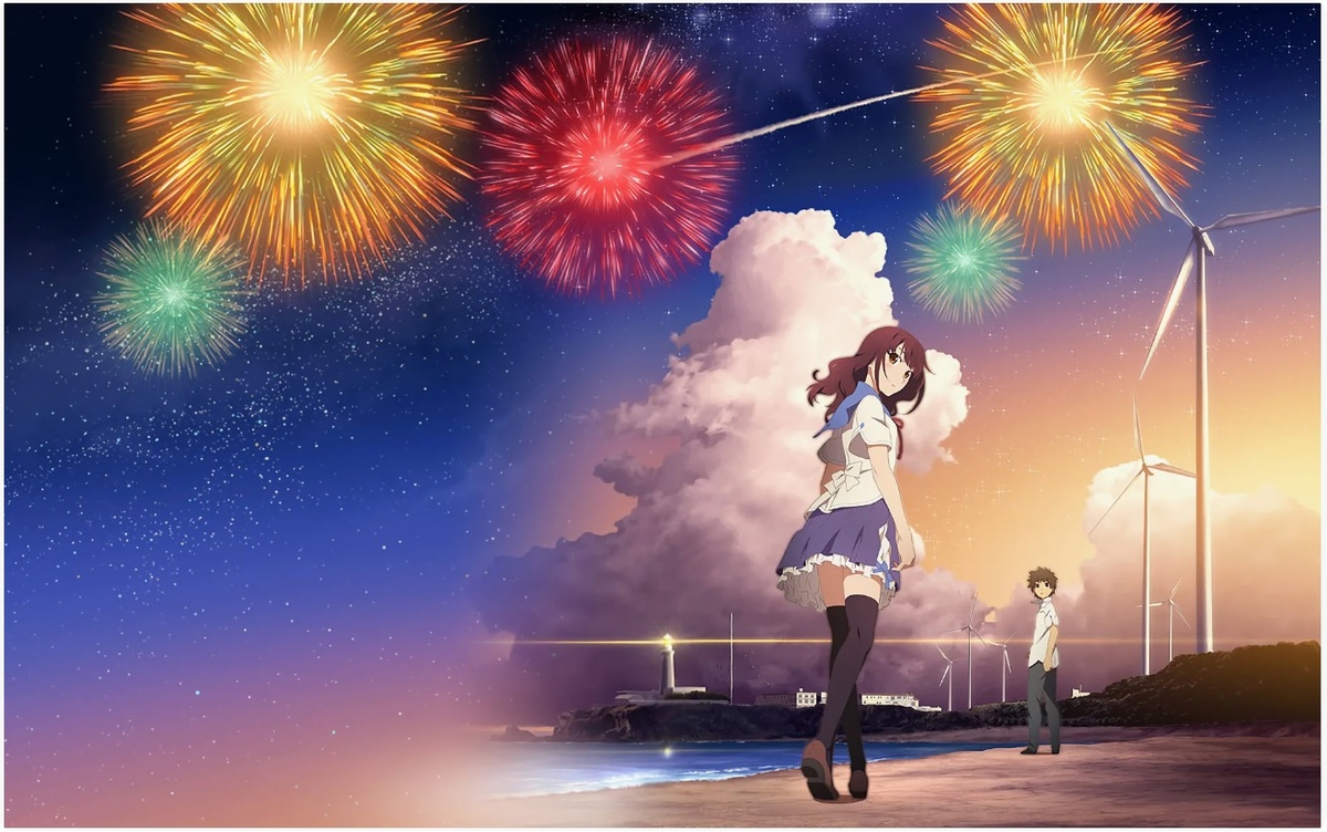 "Как смотреть фейерверк?" (Uchiage hanabi, shitta kara miru ka? Yoko kara miru ka?; УчиагЭ ханабИ, шиттА карА мирУ ка? ЁкО карА мирУ ка?). Фильм. (01.30.00 мин.).