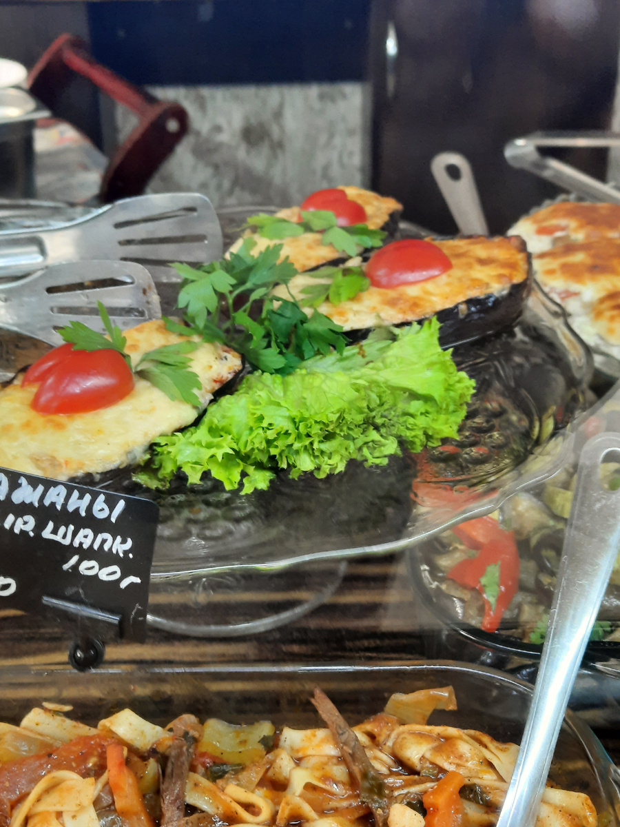 Работающих кафе и столовых и в межсезонье в Лазаревском много, но я питаюсь в нашем гостевом доме "Ширак". Объясняю почему. 👌 Мне удобно, что с 8:00 и до 20:00 я в любое время в тапочках и без верхней одежды я могу спуститься на 1й этаж. А если я прихожу с прогулки, а так чаще и бывает, то не надо подниматься в номер, чтобы помыть руки, т.к. в зале есть санузел. А в дождь не надо думать, куда и в чём идти. 👌Прожив 2 недели и попробовав разнообразные блюда, моя пищеварительная система не бунтует. Её всё устраивает 😉. 👌Большой выбор блюд на любой вкус: диетические, острые, холодные закуски... Особенно нравятся армянские блюда, которые готовит сама хозяйка Армине. Вчера в чат бывшие отдыхающие выложили фото блюда, которое они приготовили дома по её рецепту 🙂. Обещала провести мастер-класс приготовления армянских блюд. А это 👇 некоторые блюда в витрине. 👌Можно есть в кафе, можно забрать в номер. Тебе положат на тарелку, в контейнер, в пакетик, завернут в плёнку, лишь бы ты ел и