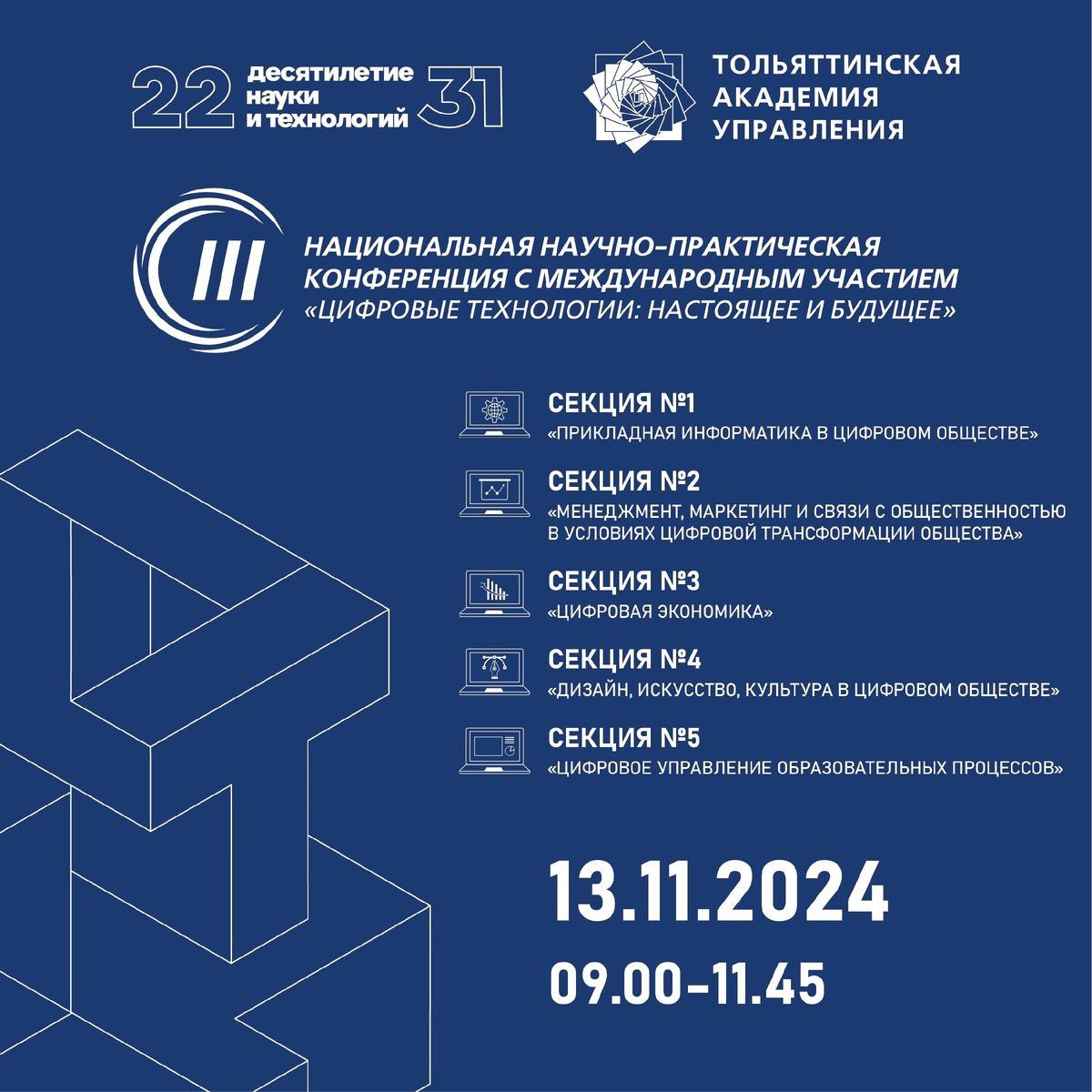 💥13 ноября в Тольяттинской академии управления состоялась III Национальная научно-практическая конференция с международным участием «Цифровые технологии: настоящее и будущее».