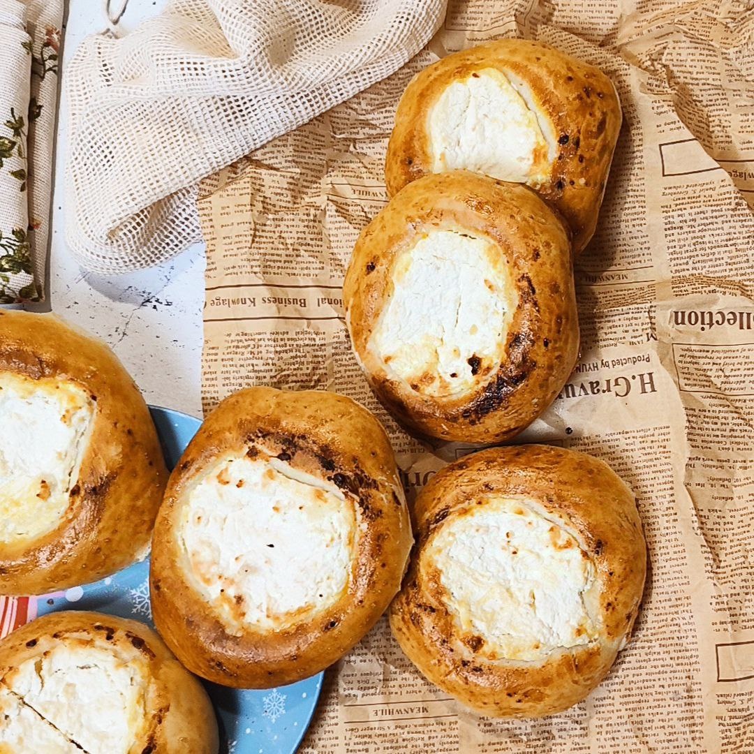 - Чтобы получить золотистую корочку, смажьте края ватрушек взбитым яйцом или молоком.