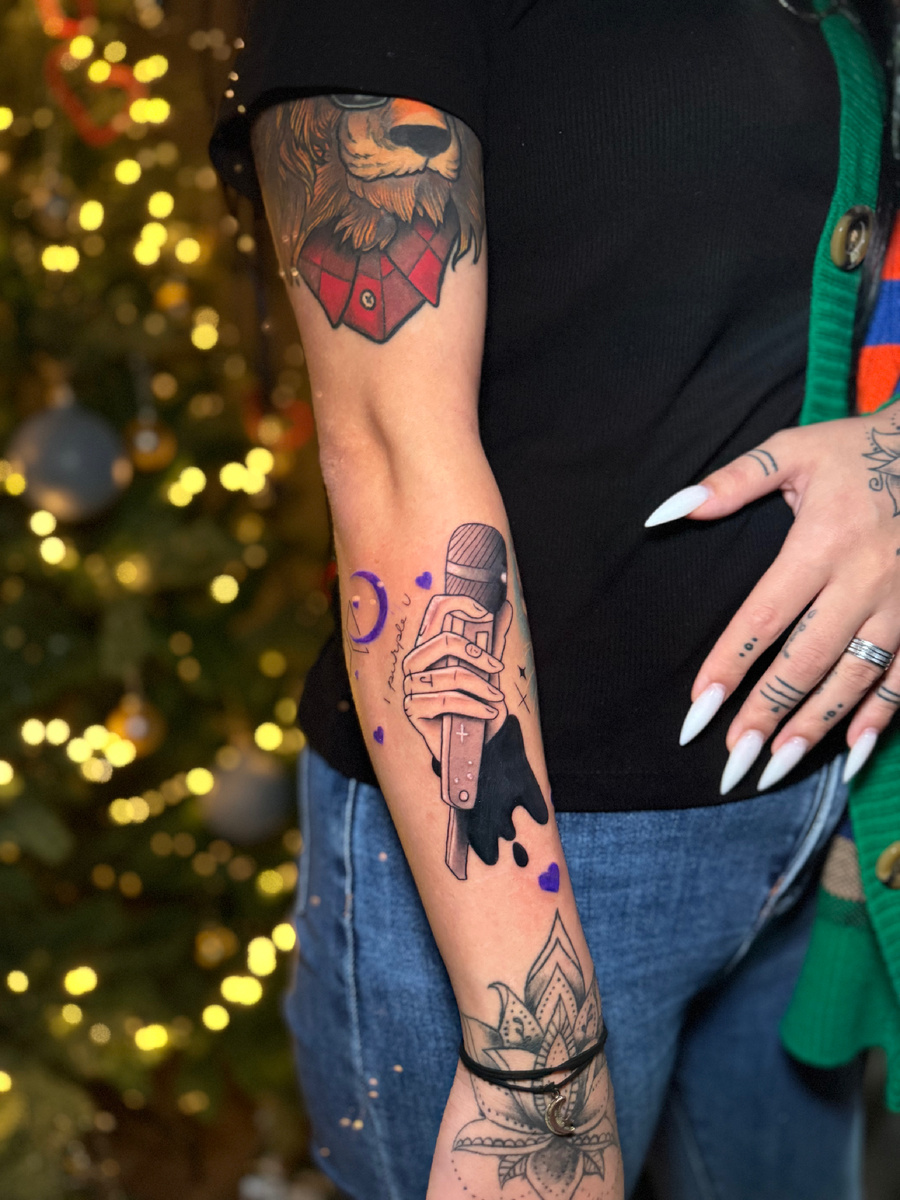 Татуировка в честь любимой группы. Тюмень, мастер Даниил Габула