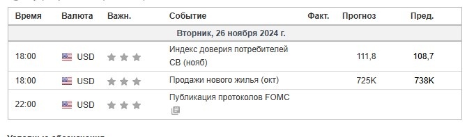 18:00 USD Индекс доверия потребителей CB (нояб). Предыдущее значение 108.7, прогноз 111.8.