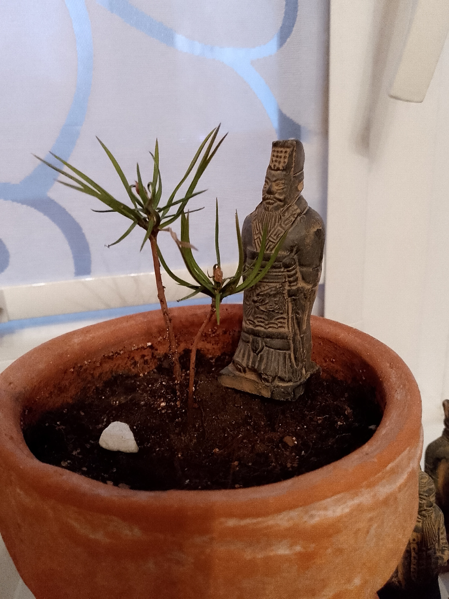 ...до нашей эры жил такой Ин Чжэн, который в 13 лет стал ваном одного из самых могущественных царств Китая Цинь... Помните фильм "Герой"? Там Джет Ли как раз пытается убить Ин Чжэна... А кстати! Джет Ли сыграл потом самого Ин Чжэна в третьей части " Мумии". Точнее, он сыграл того же самого человека, но получившего новое имя - Цинь Ши-Хуанди. ...двухсотлетнюю эпоху Воюющих царств, объединит эти царства и из вана превратиться в первого императора. Титул Императора Китая просуществует до 1912 года. Так вот, еще будучи ваном Ин Чжэн задумал построить себе гробницу и в ней с собой поместить великое войско терракотовых войнов. 38 лет, 700 000 рабочих и ремесленников трудилось над созданием этого войска. Терракотовая армия - так её именуют сегодня. К чему это я? ...узнав про кедрят у меня на подоконнике, сказал, что оставлять их без присмотра нельзя. И направил небольшой контингент своей терракотовой армии для охраны. И вот, отправившись от Сианя, мимо горы Лишань, пройдя пол