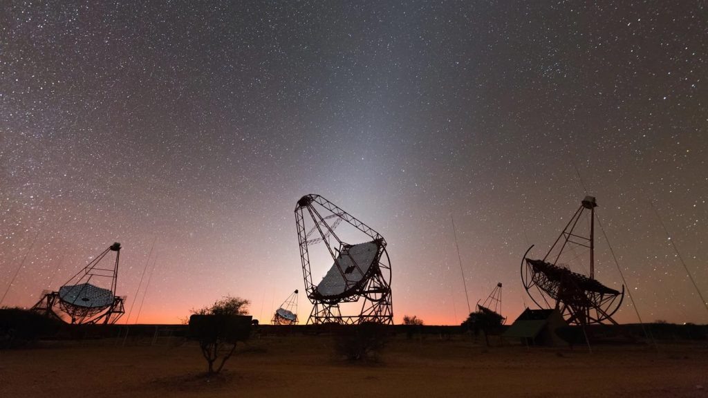 Астрофизики из обсерватории H.E.S.S в Намибии зафиксировали космические электроны и позитроны с беспрецедентно высокой энергией более 10 ТэВ. Ученые обнаружили космические электроны и позитроны с энергией, которая считалась ранее недостижимой. Международная команда из обсерватории H.E.S.S. (High Energy Stereoscopic System), расположенной в высокогорье Намибии, проанализировала данные десятилетия наблюдений и впервые зафиксировали заряженные частицы с энергией более 10 ТэВ. Исследование раскрыло удивительные особенности распространения космических лучей. Ученые обнаружили резкий излом в энергетическом спектре частиц на отметке в 1 ТэВ, который указывает на локальный источник высокоэнергетического излучения. По словам Вернера Хофманна из Института ядерной физики Макса Планка, этот спектр может быть результатом активности одного-единственного пульсара, находящегося максимум в нескольких тысячах световых лет от Земли. Телескопы H.E.S.S. используют атмосферу Земли как гигантский детектор, у