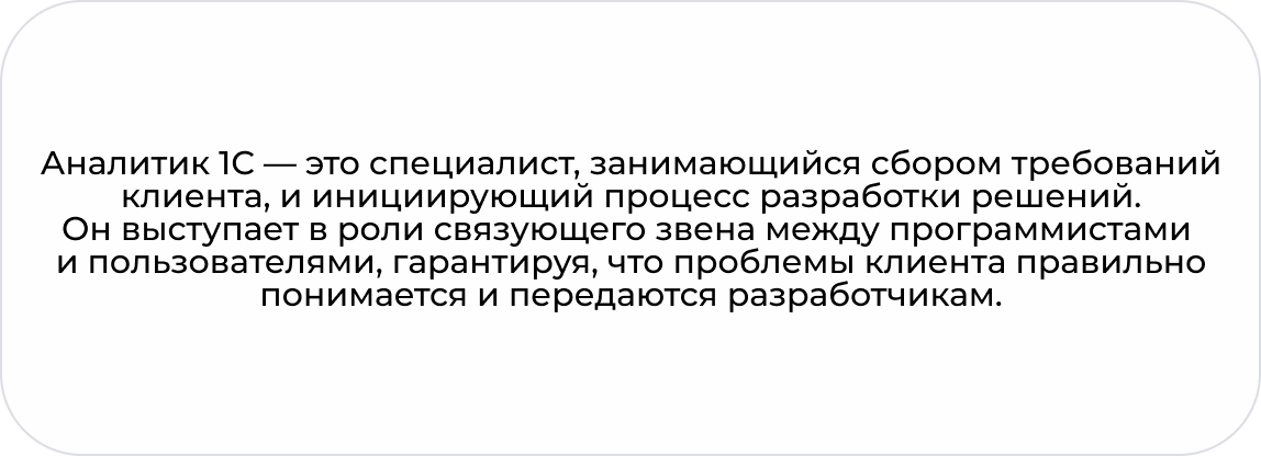 Часто можно столкнуться с мыслью, что основная задача Аналитика 1С — это только написание технических заданий, технических описаний, функциональных требований и т.д. Так ли это? Давайте разбираться. Начнем, как всегда, с понятий. Что такое техническое задание? Можно предположить, что главная работа аналитика — просто четко и грамотно прописать техническое задание и передать его разработчику. Это отчасти, правда, но далеко не все. На самом деле, аналитик является одной из ключевых фигур, от которой зависит успех всего проекта. Он выполняет множество важных задач, таких как общение с клиентом, планирование проекта, оценка временных затрат, презентация проекта и многое другое. Ниже отметим основные направления деятельности Аналитика 1С. Почему это так важно? Простое техническое задание по шаблону недостаточно для успешной и качественной реализации проекта. Правильно сформулированные уточняющие вопросы, индивидуальный подход к потребностям заказчика, а также уточнение сроков и различны