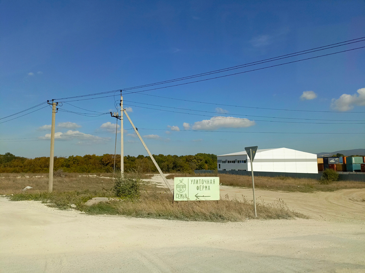 Улитки - деликатесное блюдо, которое придумали французы. Однако, побродив по просторам интернета, прочитала, что употреблять улиток начали еще в Древнем Китае. Верить этому или нет - воля каждого, однако и в нашей родной огромной стране нашлось место для выращивания улиток. "Упав на хвост" братику в сентябре этого года, поехала с ним в командировку в станицу Раевская г. Новороссийска Краснодарского края. И тут, в поле, наглым образом он меня высадил из машины возле самодельного рекламного щита (на фото), и говорит: "Иди, прогуляйся, узнай,что это, потом расскажешь...". Моему возмущению не было предела, однако любопытство взяло верх. Ведь для меня что такое улитка? Это во-первых, биоматериал для изготовления женского омолаживающего крема; во-вторых-антистресс при общении с огромной, размером с ладонь улиткой; в-третьих, деликатес у французов. С этими мыслями я шла в своих мыслях сначала по какой-то дороге мимо стройки, потом по полю, потом по лесу, прислушиваясь к каждому звуку в о