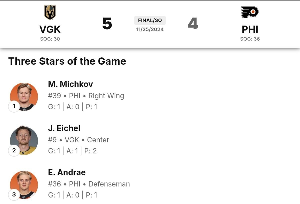 Матвей Мичков не перестает радовать болельщиков «Филадельфии». В понедельничном матче с «Вегасом» 19-летний российский нападающий снова отличился забитым голом, доведя до 8 количество своих заброшенных шайб в текущем сезоне. Посмотреть видео Гол Мичкова не помог «Филадельфии» удержать победу («летчики» уступили по итогам серии буллитов 4:5), однако именно Матвей стал главной звездой поединка, по версии НХЛ. Классный перфоманс молодого россиянина оценили американские болельщики, оставлявшие свои комментарии в социальной сети X (Twitter). @BeeTEE15:– Первый месяц Мичков приноравливался к НХЛ, оценивая уровень сопротивления. Он словно суперкомпьютер, который изучил все ходы, и теперь отлично понимает, что нужно делать, чтобы разрывать лигу. @hockeystat7:– Мичков – самый башковитый игрок из тех, что появились в НХЛ за последние несколько лет. @BillyCeeee:– Боже мой, как же хорош Мичков! Я бы мог целыми днями смотреть за его игрой. Парнишка станет суперзвездой, можно уже сейчас подписать с