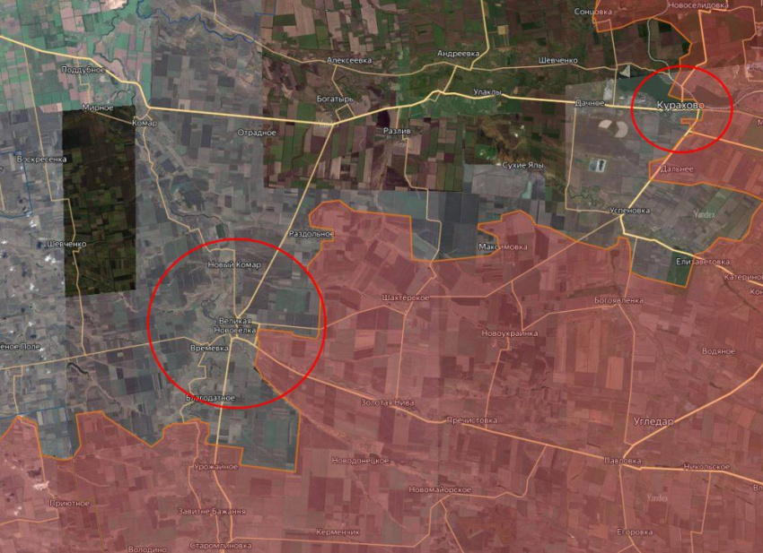 Кроме того, наши витязи продолжают предпринимать усилия по ликвидации небольшого котла к востоку от автодороги O0510 Курахово – Великая Новоселка (к юго-востоку от Курахово и к северо-востоку от Угледара).