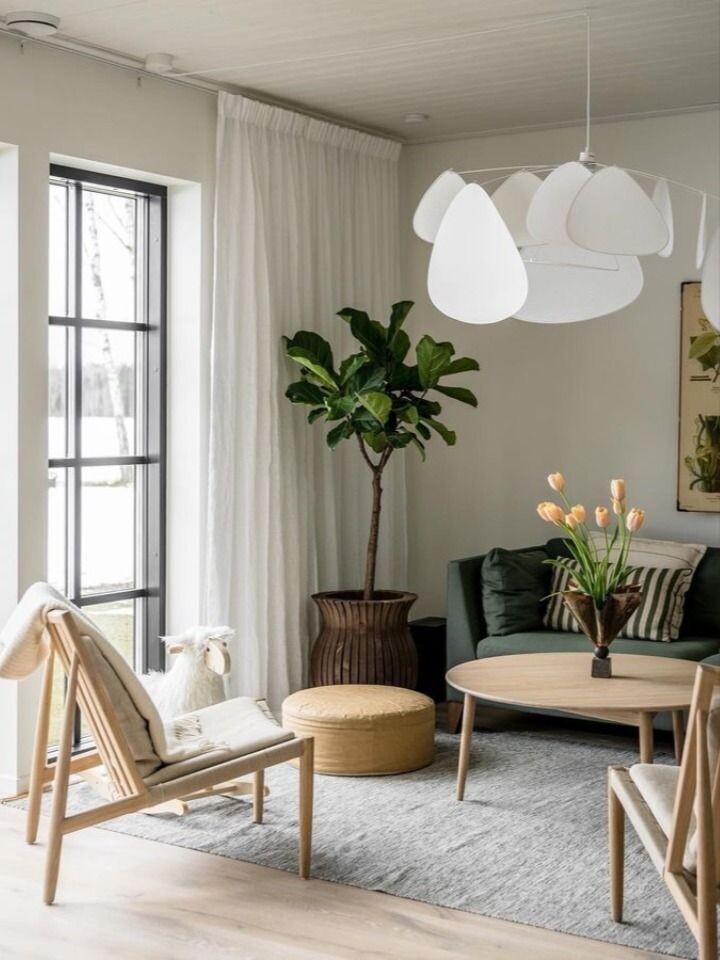 Многие любят скандинавский стиль в интерьере, потому что он умело сочетает традиции "холодных" стран с современными тенденциями. Этот стиль зародился в северной Европе, где царят суровые погодные условия и вечная тоска по лету. Именно поэтому типичный интерьер в скандинавском стиле выглядит так: Растения в скандинавском интерьере считаются неотъемлемой частью декора. Они являются яркими акцентами на фоне нейтральных базовых цветов, а также способны повысить настроение и очистить воздух. Поэтому комнатные растения могут быть размещены практически в любом месте: на полках, на полу, на подоконнике, на стеллаже и т. д. Гостиная В гостиной можно создать настоящий зеленый уголок. Попробуйте объединить несколько видов растений в одну композицию, чтобы оживить пространство и создать уютную атмосферу. Для создания маленького оазиса можно использовать следующие растения: Важно помнить, что освещение и температурный режим являются ключевыми факторами для здорового роста и развития растений.