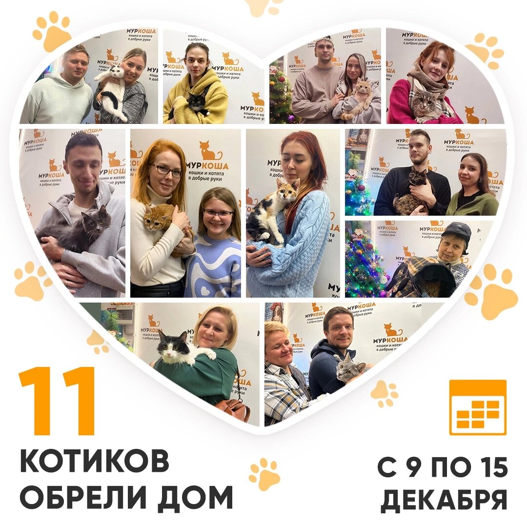 Друзья! Сегодня среда, и мы, как обычно, подводим итоги работы «Муркоши» за прошедшую неделю. Кто же стал счастливым выпускником Центра помощи кошкам «Муркоша» с 09 по 15 декабря 2024 года? 😺 🥳 Итак, за прошедшую неделю домашними и любимыми стали 11 котиков! Возможно, раньше Билимби с черепаховым окрасом жила дома. Но она оказалась не нужна своим прошлым хозяев. К счастью, у кошечки появилась возможность снова обрести счастье. Так вскоре и случилось у нас в «Муркоше»! Фидда попала к нам с передержки. Там же жили её сёстры – Анталия и Харма и братья – Пикачу и Ашер. Все они уже нашли свой дом. А вот и пушистую красавицу Фидду заметил добрый человек, и они уехали домой, чтобы жить долго и счастливо! Мальма жила у водохранилища вместе с братом Марлином. Кошечка уже уезжала домой из «Муркоши», но получилось так, что вернулась обратно. Это значит, что Мальме стоило просто подождать своего человека. И совсем скоро она дождалась! А братик Марлин ещё ждёт семью. Пожелаем ему удачи! Милый