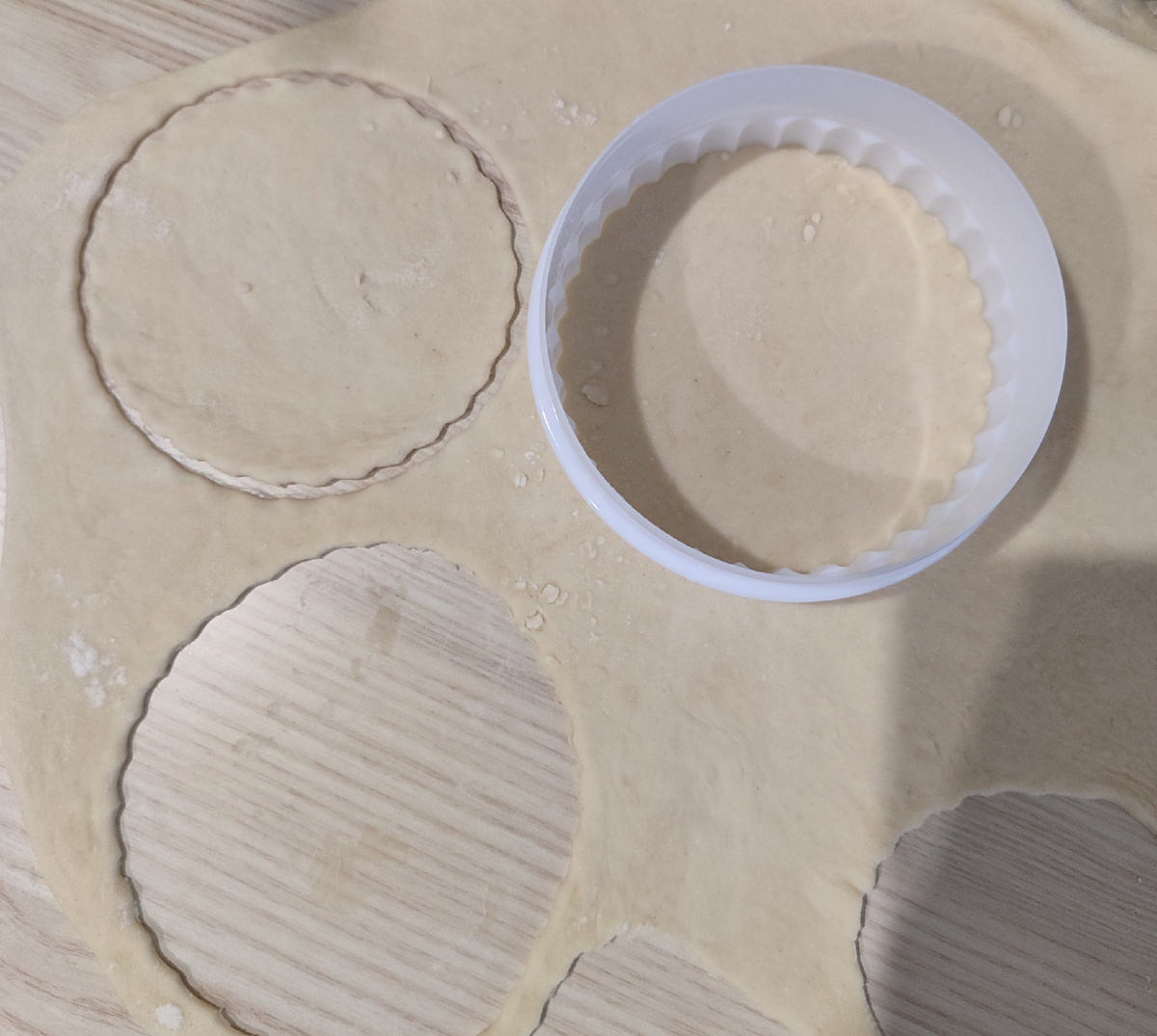 Ох, уж эта неугомонная Света 🤦 Как что-то взбрендит ей в голову – так пиши пропало 🤣 Еле-еле дождалась сегодняшнего утра, чтобы совершить ещё один эксперимент) Давным-давно хотела я научиться печь тарталетки) И наткнулась на днях на рецепт со слоёным тестом. Но уж такой он был замороченный, что я решила всё сделать по-своему 😁 Итак, Разморозила тесто в течение часа при комнатной температуре, раскатала в пласт примерно 0,3 см, используя муку для подсыпки, и вырезала кружки диаметром 9 см: Взяла силиконовые формочки диаметром 7 см и вложила в каждый по кружку тонкого теста, придавая им форму тарталеток: У меня есть маленькие стеклянные соусники, которыми я слегка вдавливала тесто в формах: Они малюсенькие – 30 мл. Суть в том, чтобы найти любой предмет, которым можно было слегка "утрамбовать" тесто в корзинке. Далее я наколола тесто вилкой и отправила тарталетки в разогретую до 180 градусов духовку на 15 минут. На выходе получилось 12 небольших румяных тарталеток: Теста на них у меня