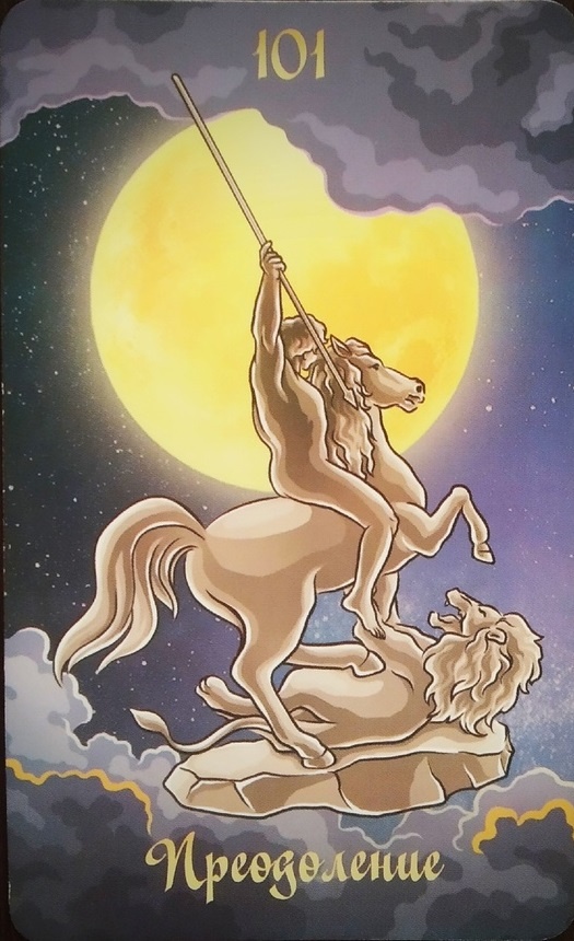 Карта Преодоление это сто первая карта колоды, которая обозначает преодолеть себя, отстаивание точки зрения, борьба.
