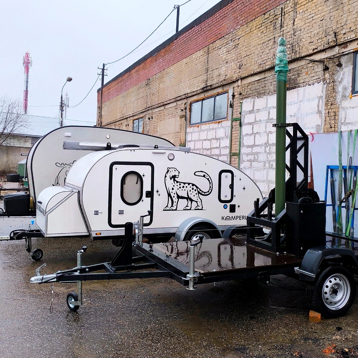 Если бы трейлеры умели разговаривать, то наверняка рассказали бы много интересных историй из своих путешествий. Нашему молодому БАРСику на производстве выделили место рядом с "ветераном". Белый "Лось" всю свою жизнь трудится в арендном парке. Даже сложно представить сколько людей он сделал пусть немного, но счастливее. Сколько он видел улыбок, сколько слышал детского смеха. Но есть у него в памяти и грустные истории. Например о том, как его угнали и бросили перевёрнутым на трассе М4 под Ростовом-на-Дону. Так и лежал он там, пока на него не обратили внимание неравнодушные люди. Потом была целая спасательная операция достойная художественного фильма под названием "Лось возвращается домой".