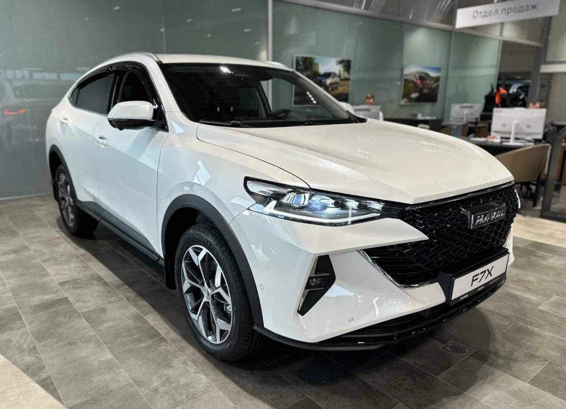 Haval F7x продаётся в России с 2019 года, в 2022 году кроссовер пережил рестайлинг, хитом продаж F7x в России не является, но на дорогах попадается достаточно часто. В России F7x продают в трёх версиях: На момент написания статьи, самый бюджетный F7x, по данным официального сайта, стоит 2 499 000 руб., а самый дорогой 3 399 000 руб. А какая цена на кроссовер у дилера, я решил заехать в автосалон Haval, чтобы посмотреть цены на F7x. Haval F7x у дилера остался всего один, оказалось, что Haval сняли с производства не только F7 первого поколения, но и F7x. Им на смену пришёл Haval F7 второго поколения, о кроссовере Haval F7 второго поколения и о том, сколько он стоит, я уже рассказывал на канале. Haval F7x у дилера остался в белом цвете, в топовой комплектации Tech Plus, мотор 190-сильный. В целом Haval F7x спустя пять лет после своего выхода в России не выглядит устаревшим и кроссовер пользовался спросом, какой смысл было его снимать с производства, могли бы выпускать F7 нового поколени