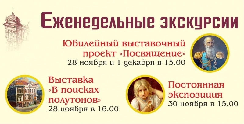 Экскурсии проходят каждую субботу по залам «Западноевропейское искусство XVI – нач. XX века», «Русское искусство XVIII – нач. XX века» и «Иконопись».